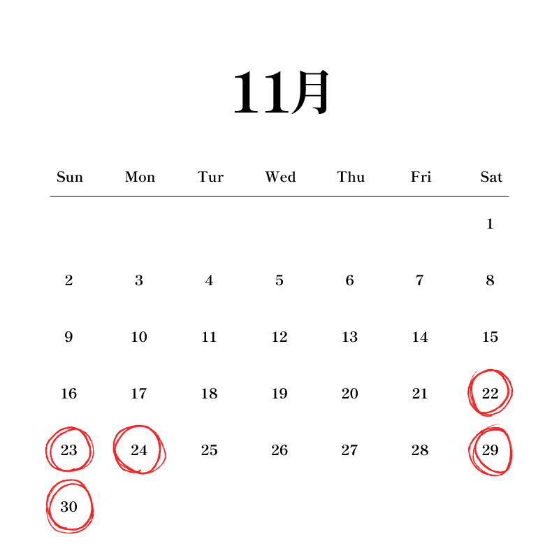 11月営業日のお知らせ