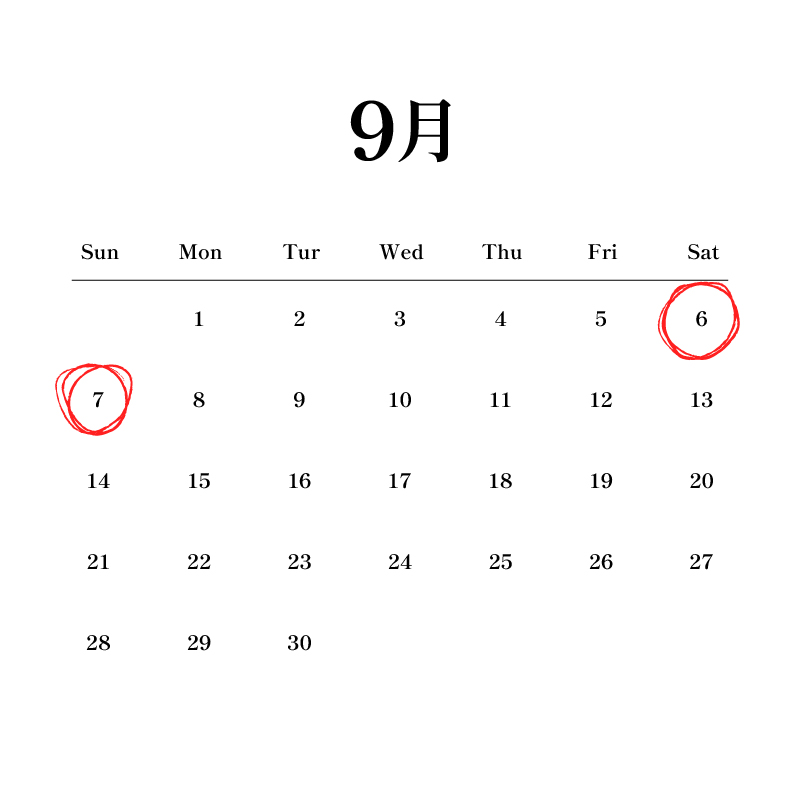 9月営業日のお知らせ